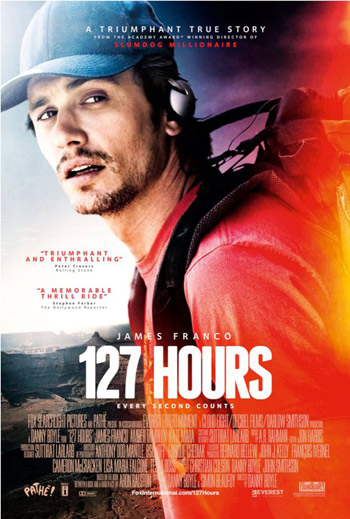 Caramba!!! Esse era um dos filmes mais esperados por mim neste ano que passou e finalmente tive a oportunidade de assistir, e direi feliz, que não me decepcionei nem um pouco! 127 Horas, conta a história real de Aron Ralston, um aventureiro que gosta de viver e fazer as coisas sozinho, se aventurando pelos canyons de Utah. Após um acidente, Aron se encontra preso à uma rocha, com o seu braço prensado. As horas vão passando, a água está racionada e o instinto de Aron vai falando mais alto. Após 127 horas preso, ele tem que tomar uma decisão: viver ou morrer?