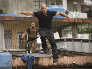 Para dar ao filme uma maior dose de violência, “Velozes e furiosos 5” rodou cenas na favela Dona Marta, onde Toretto, ao fugir da Polícia, é recebido por traficantes fortemente armados. Lá foram filmados tiroteios espetaculares e sangrentos confrontos corpo a corpo, decorados pela aparição de belas mulheres que recriam o clichê da sensualidade brasileira.