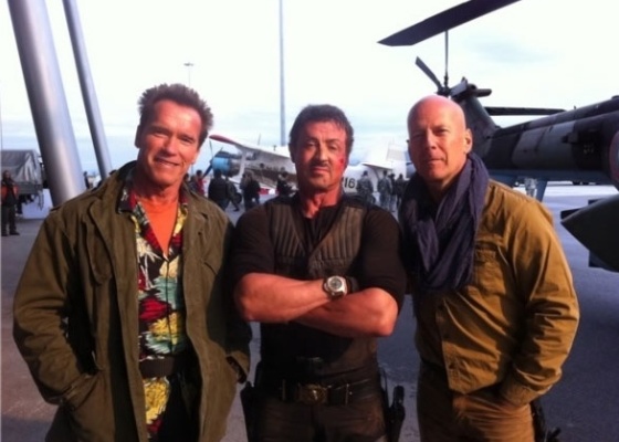 “Os Mercenários 2” está sendo gravado nos estúdios Nu Boyana, em Sofia, e conta com elenco estrelado: Arnold Schwarzenegger, Bruce Willis, Jean-Claude Van Damme e Chuck Norris, além de Sylvester Stallone.