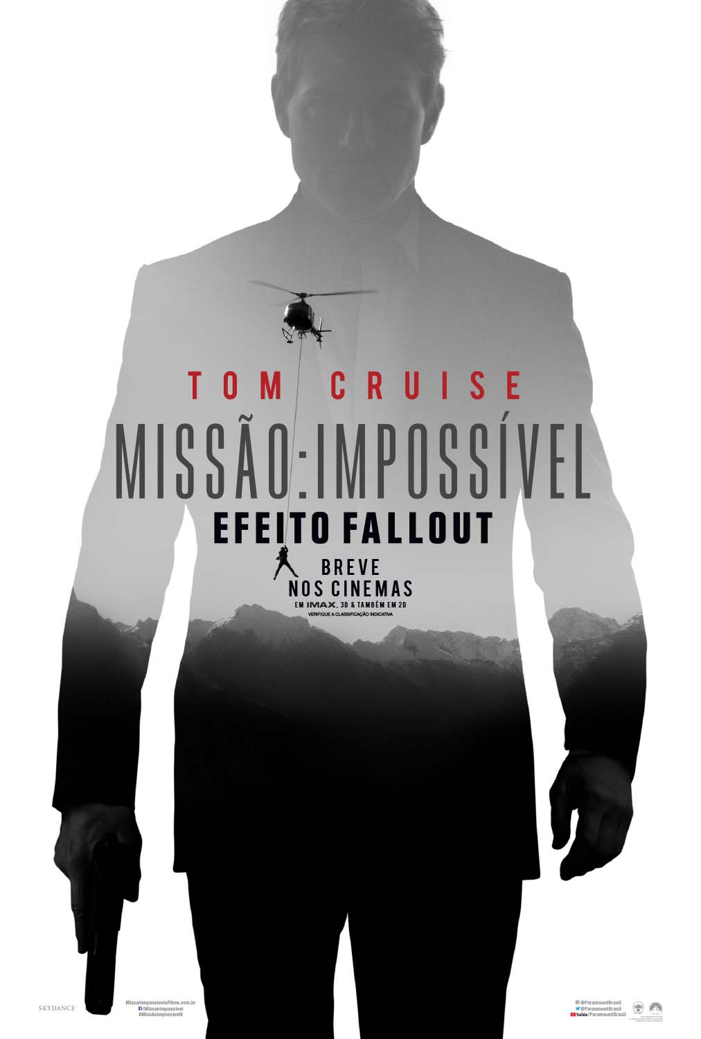 Dirigido por Christopher McQuarrie, MISSÃO:IMPOSSÍVEL – EFEITO FALLOUT (MISSION:IMPOSSIBLE – FALLOUT), tem cena divulgada com Tom Cruise sob o comando de um helicóptero em queda. O ator, que declara nas redes sociais que sempre quis participar de uma sequência como esta, se preparou em tempo recorde para esta manobra que exige, no mínimo, 2 mil horas de voo e minucioso treinamento. Confira abaixo.